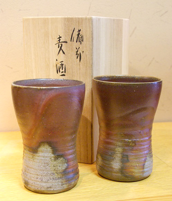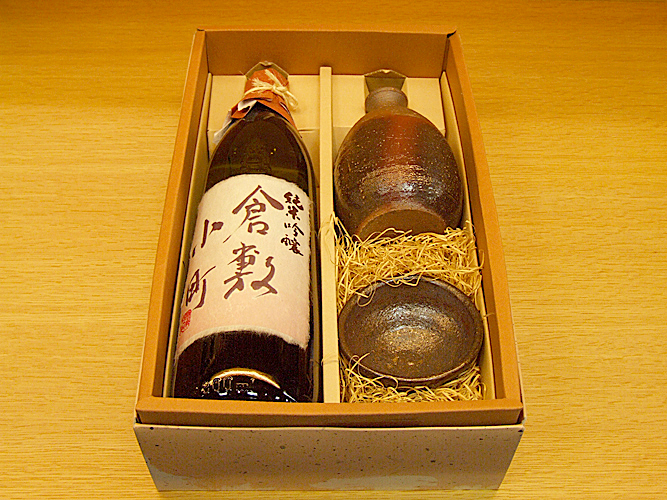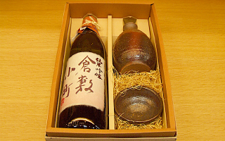 ●モーツァルトの曲を聞かせながら造った倉敷玉島の菊池酒造のお酒と、備前焼のセット。(20歳以上の年齢であることを確認できない場合には酒類は販売できません)