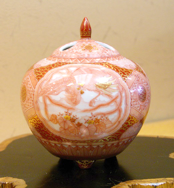 福島 武山 作赤絵間取文 香炉